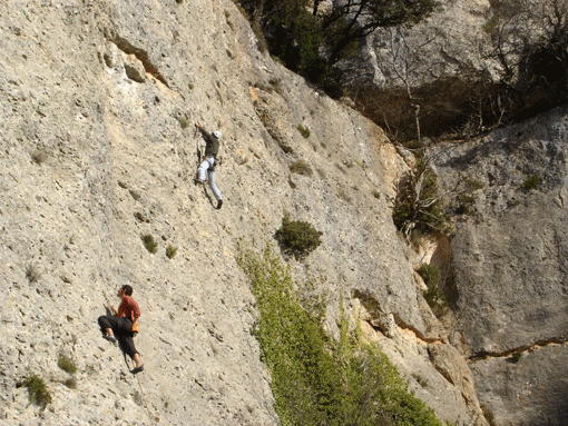Entre todos hicimos tan solo tres vías, la mala combinacion de zonas de sol y sombra, nos hicieron pasar bastante frío, comenzamos en la zona derecha con sombra y cambiamos a la zona izquierda cuando llego la sombra, el mundo al revés, aunque quizás hemos descubierto una buena zona de verano en el Montsant, cosa nada fácil por estas tierras.